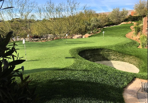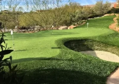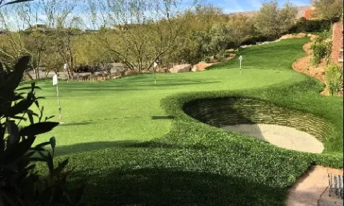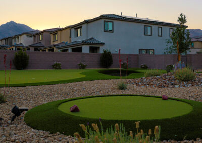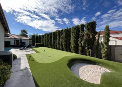 Enjoy a lush, low-maintenance lawn year-round with our USA-made artificial grass. Designed to withstand the Las Vegas heat, it’s safe for kids and pets, drains quickly, and eliminates watering, mowing, and chemicals. Perfect for lawns, playgrounds, sports fields, and golf greens, our turf delivers beauty, durability, and hassle-free enjoyment 365 days a year. For golf enthusiasts, we also create customizable bunkers with undulations and requested ball roll.
